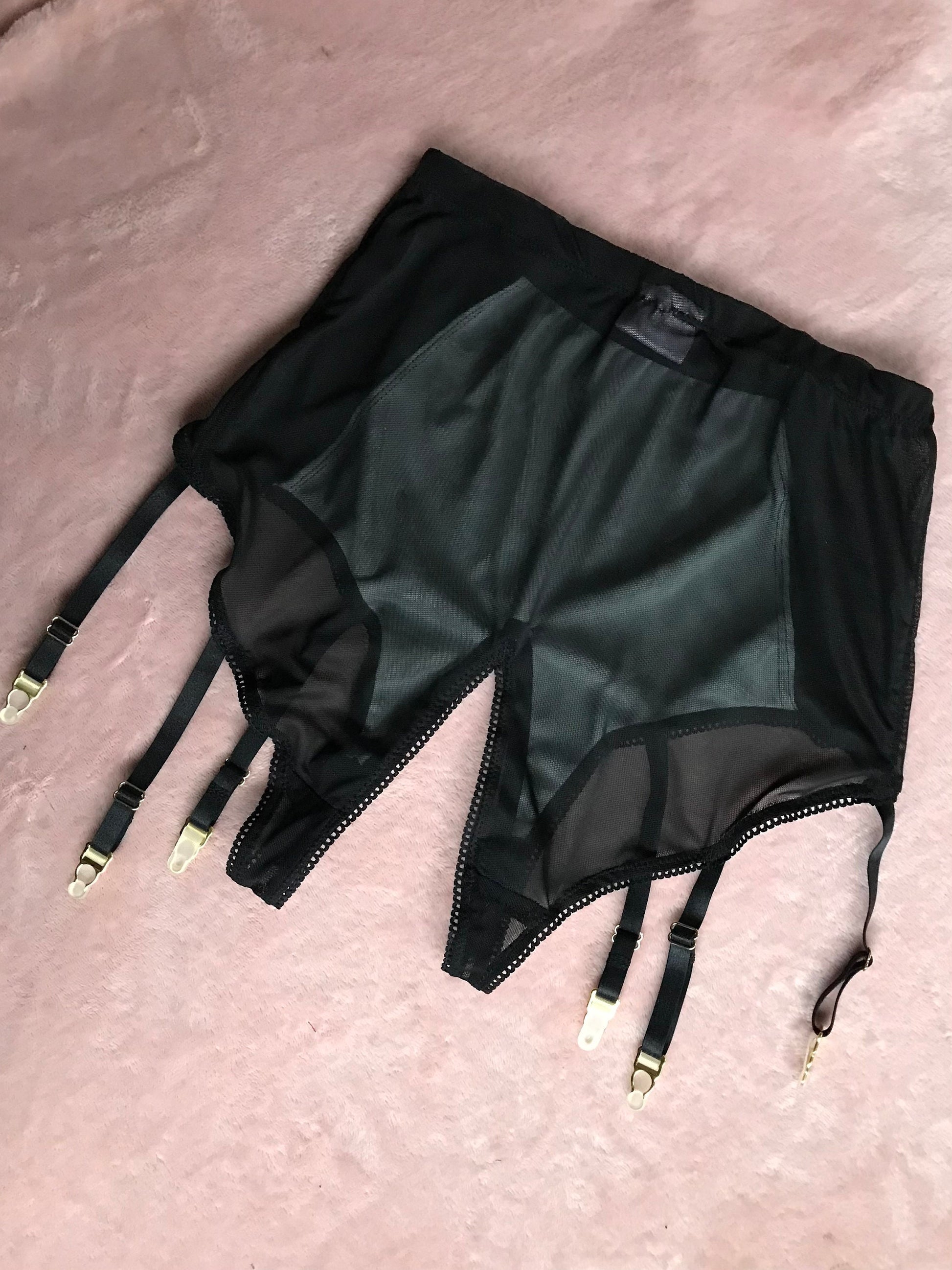 The ultimate tease! An extra naughty take on our ultra high waisted brief, crotchless with a soft elastic trim and six suspender clips.