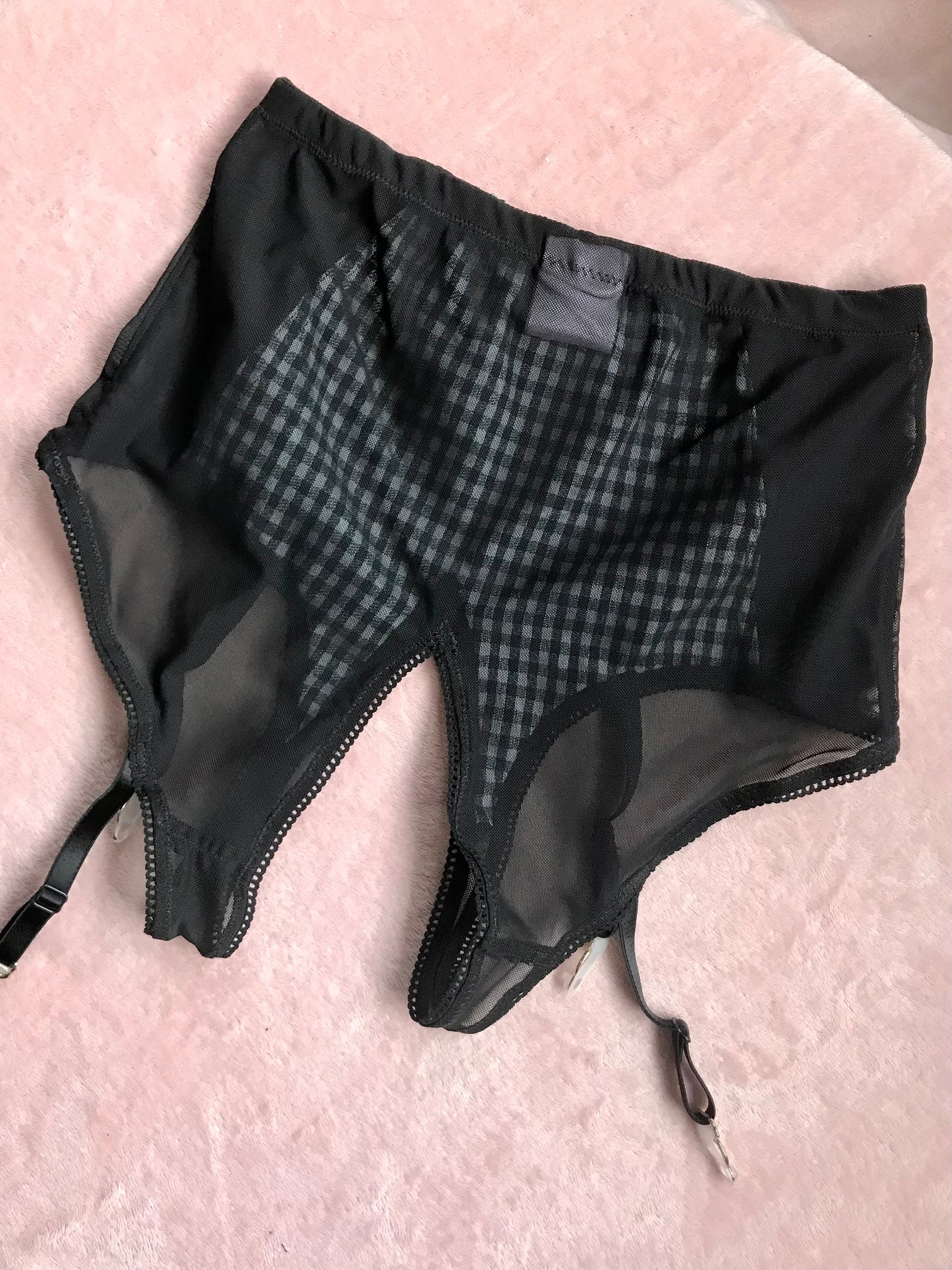 The ultimate tease! An extra naughty take on our ultra high waisted brief, crotchless with a soft elastic trim and six suspender clips.
