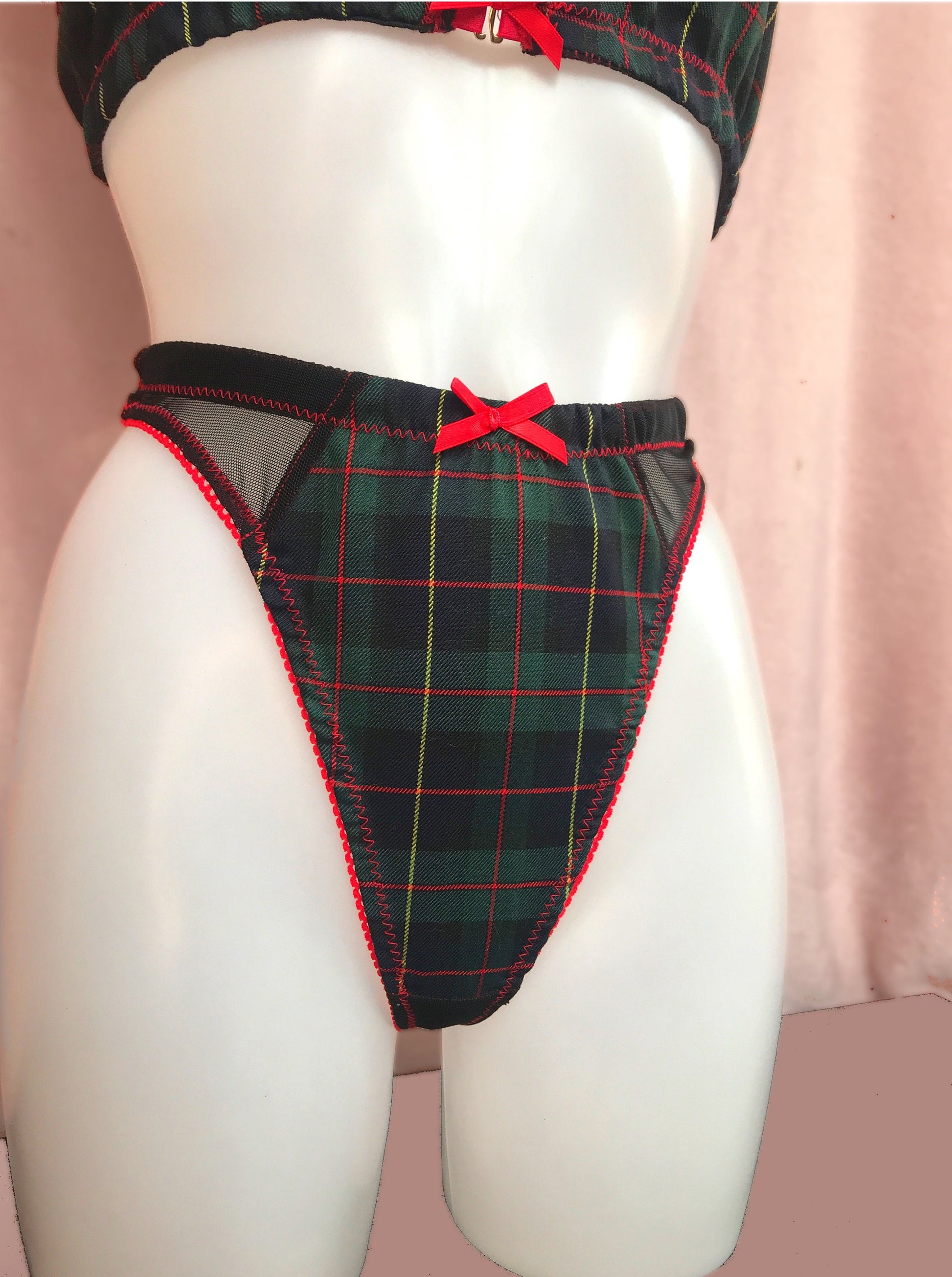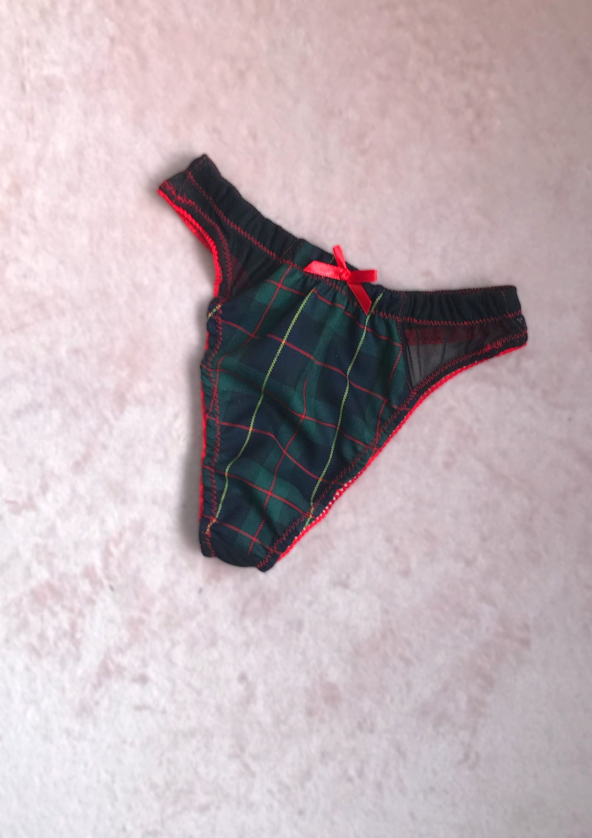 Soft tartan with contrast red elastic to make your silhouette POP!