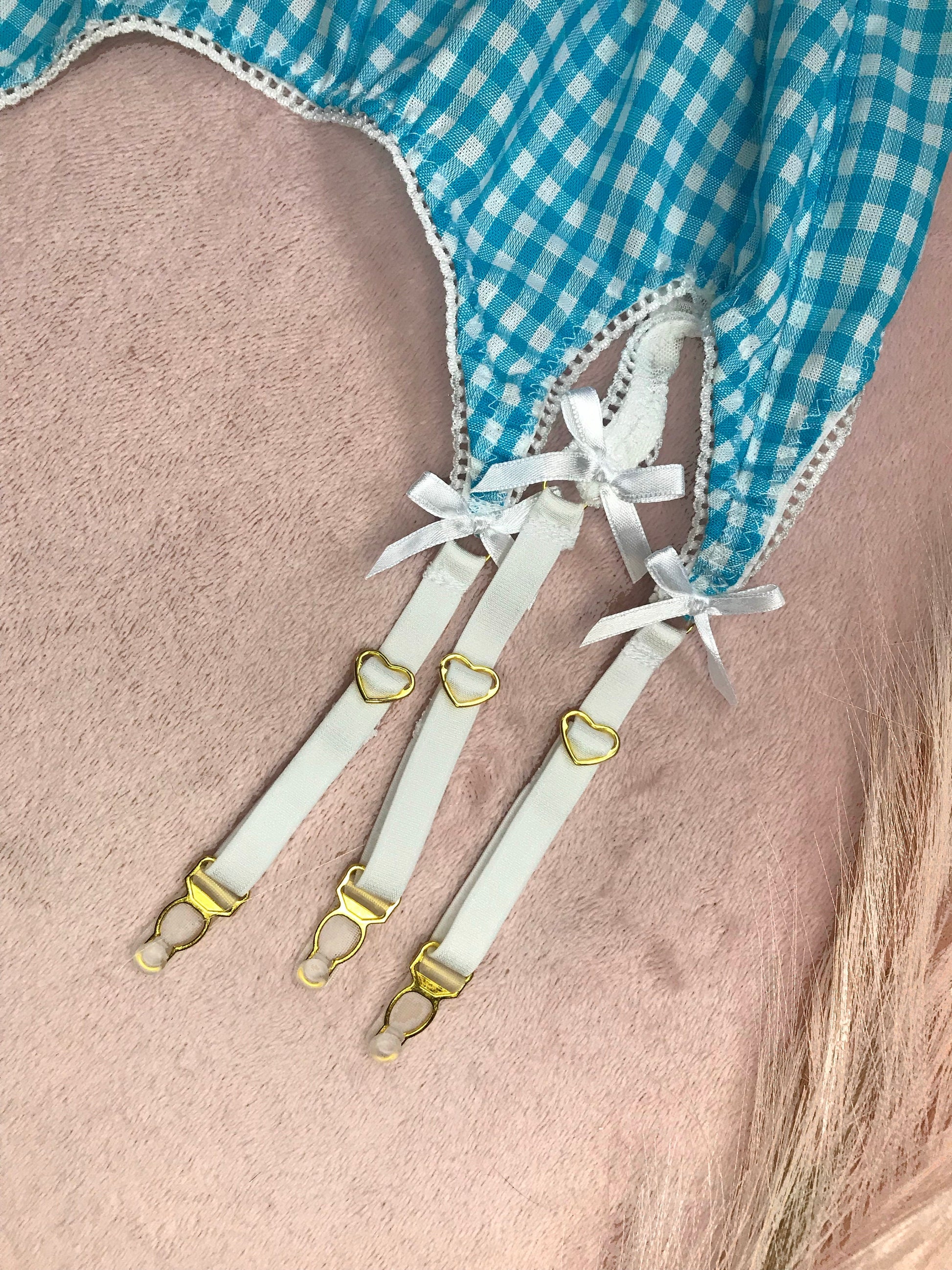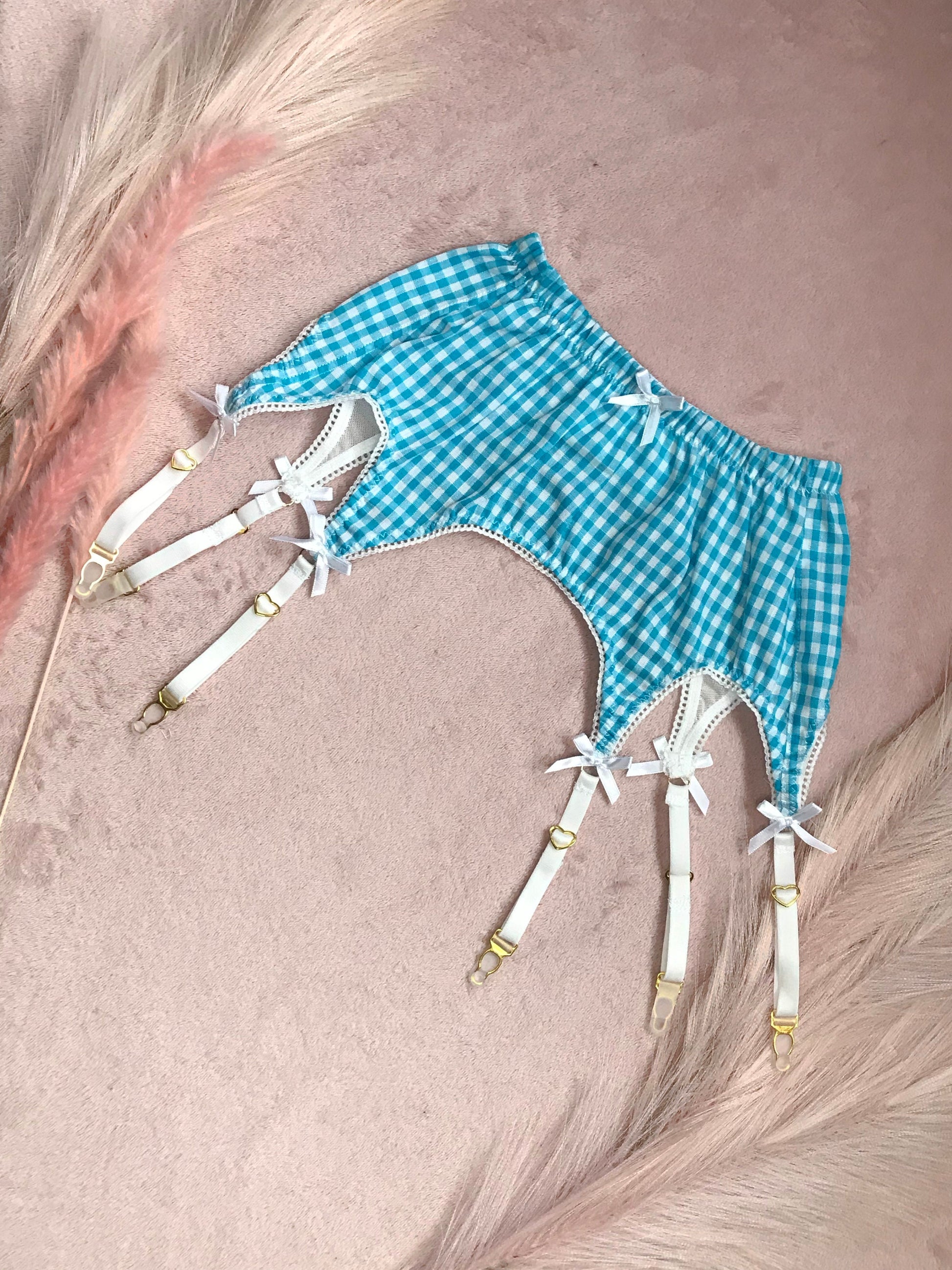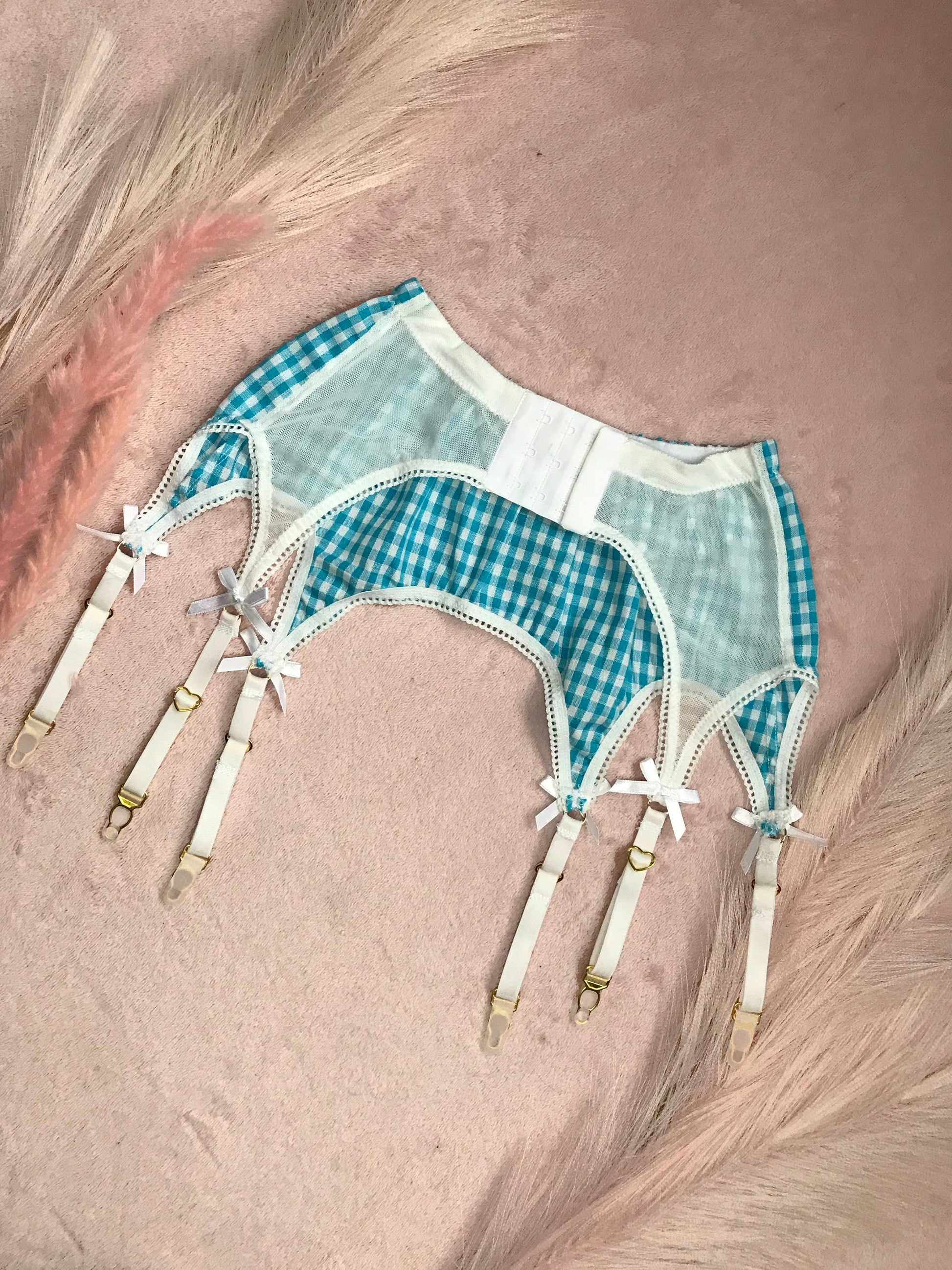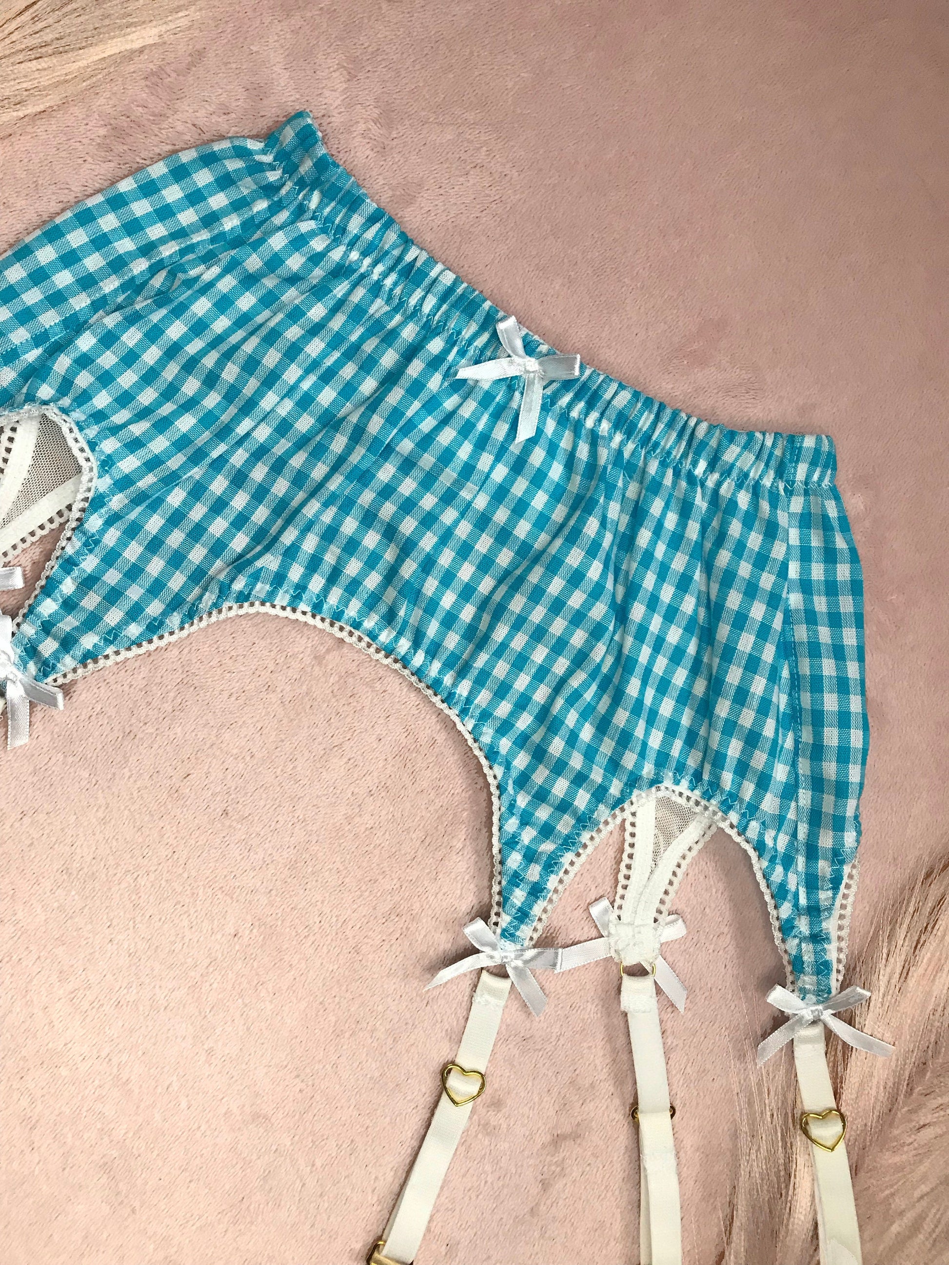 Soft gingham with white stretch mesh elastic to make your silhouette POP!