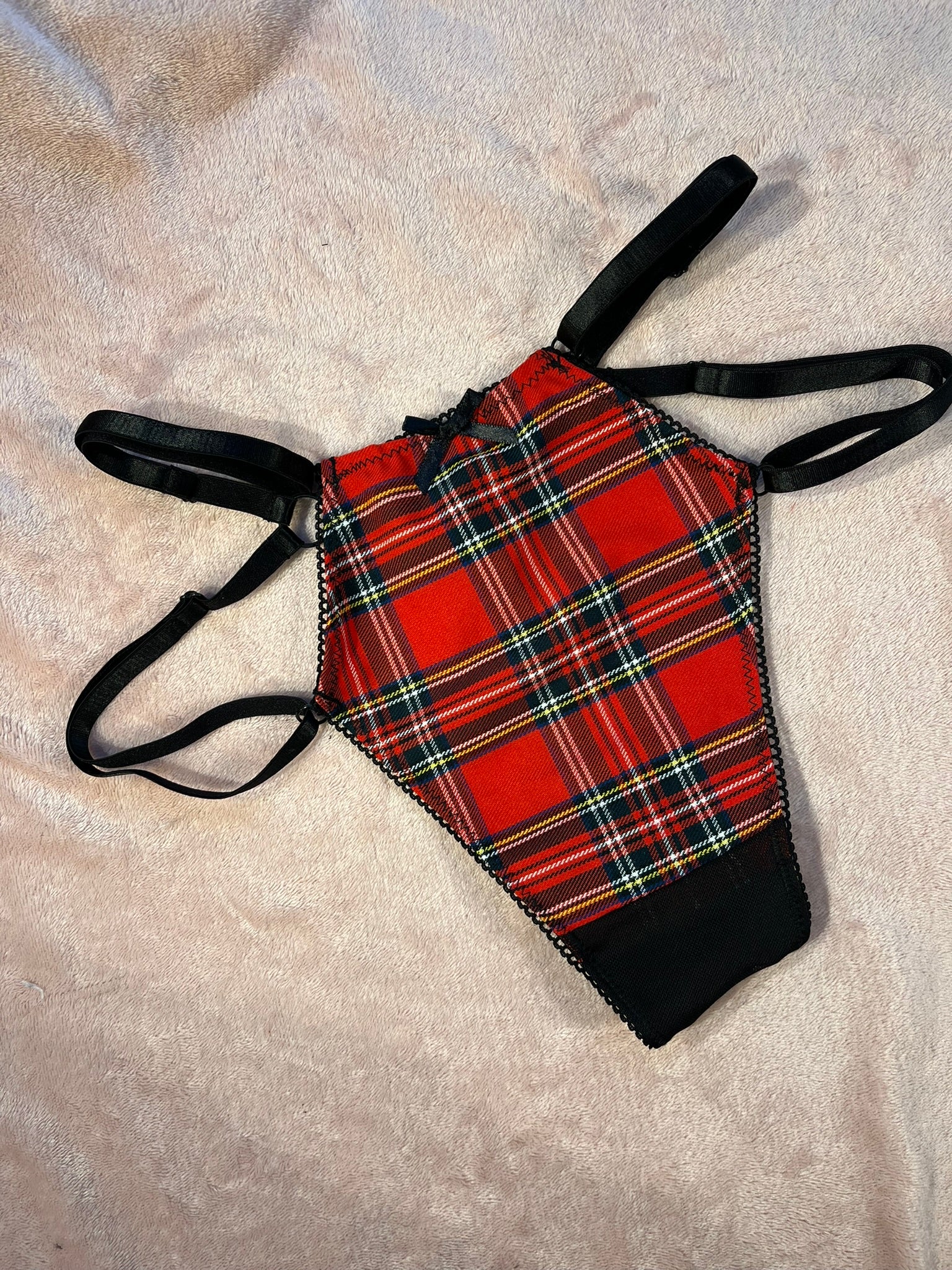 Soft tartan with contrast stretch mesh to make your silhouette POP!